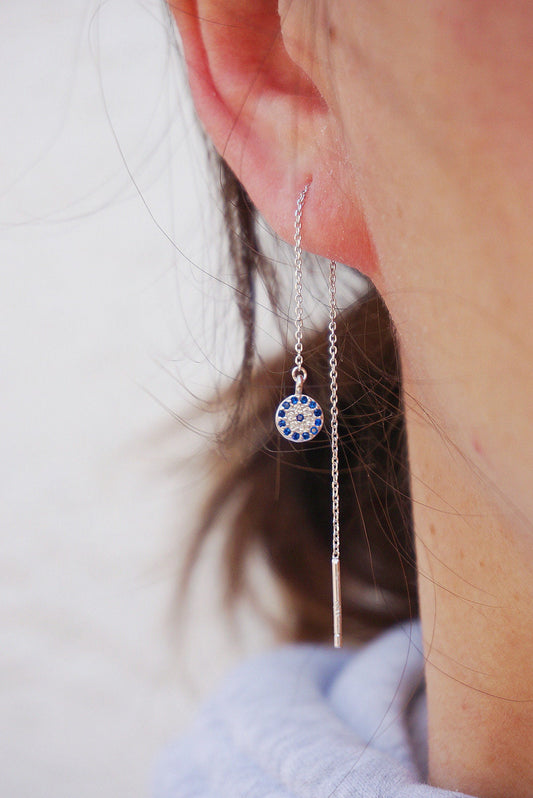 Blue eyes Threader earrings/sterling silver crystal threader earrings/gold threader earrings/threader earrings/blue eyes earrings
