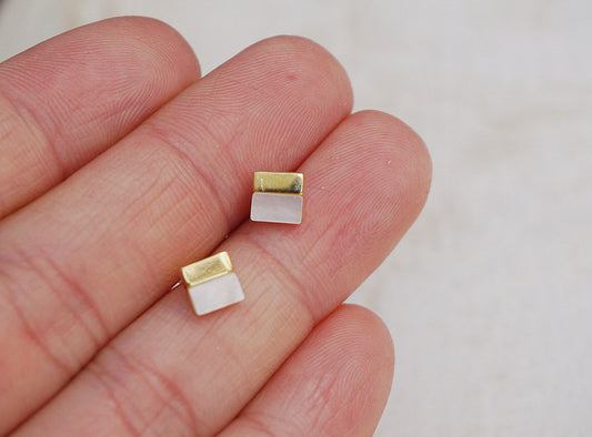 Gold square stud earrings/sterling silver square stud earrings/shell stud earrings/minimalist earring/square earring/geometric stud earring